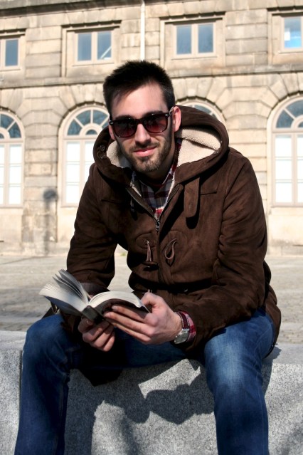 Enquanto esperava pela namorada, que tinha ido ao Instituto Português de Fotografia, o Mário sentou-se junto ao edifício da Faculdade de Ciências da Universidade do Porto e puxou de um livro de bolso. Estava a ler “A Games of Thrones“, de George R. R. Martin, o primeiro de dez volumes da melhor literatura fantástica dos últimos tempos. Poderia voltar a assinalar o facto de ter fotografado outro jovem português a ler num idioma estrangeiro, mas desta vez prefiro salientar que a relação do Mário com esta saga começou ao contrário do que é habitual: viu primeiro a série de televisão e gostou tanto que quis ler os livros que lhe deram origem.