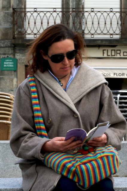 A mãe da Cristina colecionou uns livrinhos vendidos com o Jornal de Notícias e depois deu-lhos todos. Quando a fotografei estava a ler o volume intitulado “Amores“, que contém dois contos: “Uma História de Amor“, de Miguel de Unamuno; e “A Outra Mulher“, de Sherwood Anderson. É tão bom constatar que os livros podem sempre conquistar um lugar nas nossas vidas, independentemente do seu tamanho e da sua origem!