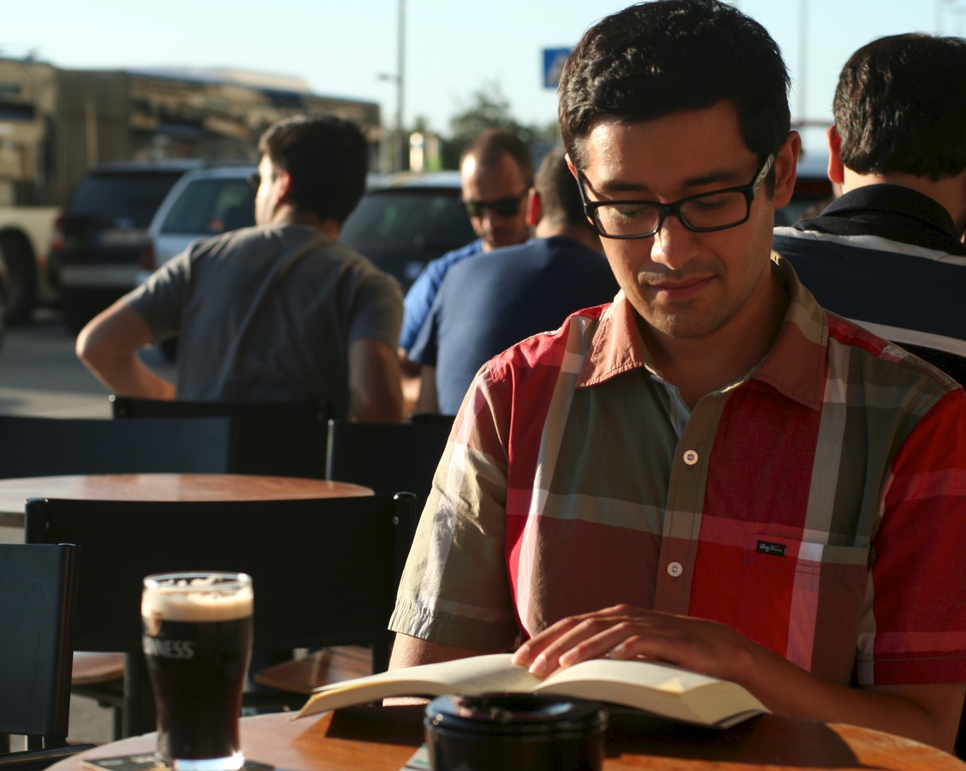 Num destes fins de semana, andava a passear no jardim do Passeio Alegre, na Foz, quando o João passou por mim num passo estugado e eu, que reconheço capas da Quetzal a milhas, percebi que levava na mão um livro do Saul Bellow. Lamentei não me ter cruzado com ele noutra ocasião, num momento em que estivesse a ler, mas resignei-me enquanto o via distanciar-se. Continuei o meu passeio em direção ao mar e foi uns metros mais à frente, na esplanada do mítico Bonaparte, que voltei a encontrá-lo, já sentado e a ler na companhia de uma Guinness. Foi perfeito!
