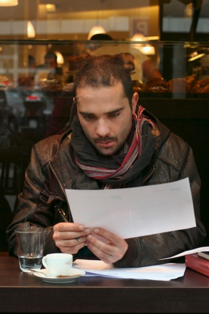 Foi numa paragem para o almoço, à procura de mais uma fatia de pizza ou de um panini num local a que aqui no Porto chamaríamos um “pão quente”, que encontrei o Stefano a ler sentado junto a uma grande vitrina com vista para a rua. O Stefano nasceu no sul de Itália, mas foi criado em Milão desde muito pequeno. Quando lhe disse que estávamos a gostar da cidade mostrou-se surpreendido porque no que lhe diz respeito Milão tem um lado sombrio, melancólico, que o leva a ponderar partir. Naquela hora de almoço, completamente alheado do bulício da clientela e da azáfama dos empregados, lia com atenção um livro em grego sobre as canções tradicionais da Grécia. A leitura iria ajudá-lo a redigir uma tese sobre a métrica das canções gregas, um trabalho que nunca ninguém fez acerca de um tema que considera verdadeiramente excitante.