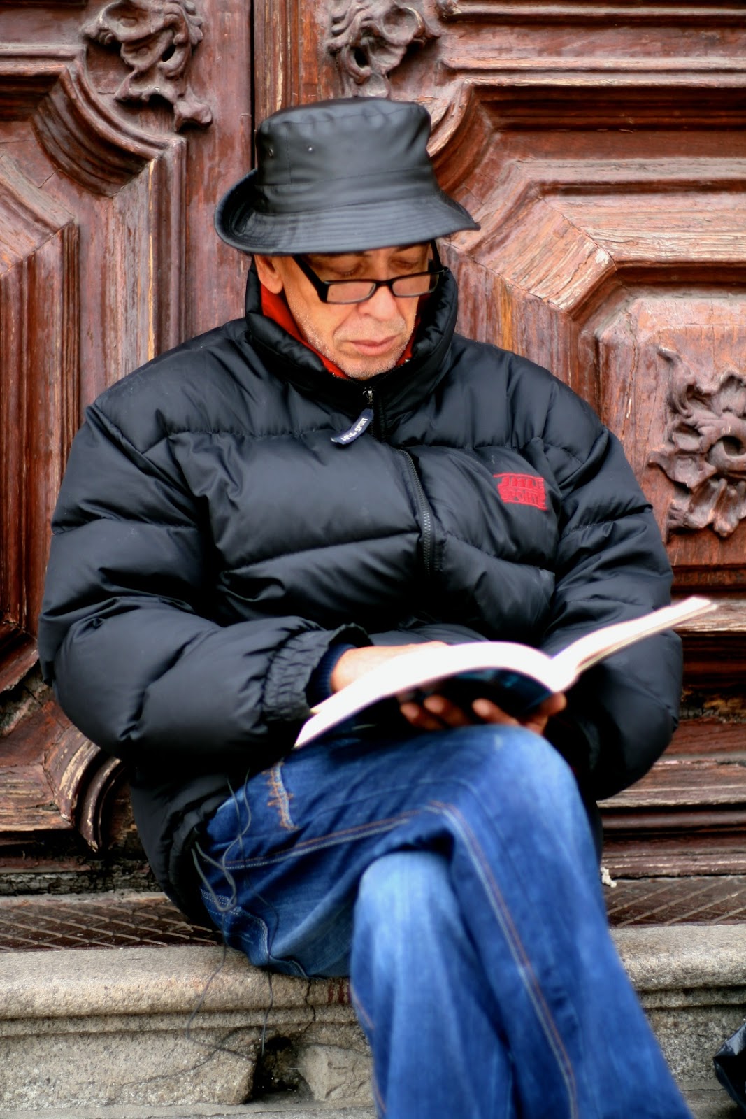 Sentado nos degraus da porta lateral da Igreja do Carmo, no Porto, o Daniel lia. Ao seu lado, um pouco mais adiante, encostados à parede da igreja e espalhados pelo chão, estavam uma dezena de cartazes. Neles o Daniel explicava a sua situação, fazia uma série de reivindicações ao IEFP (Instituto do Emprego e Formação Profissional) e pedia ajuda. Contou-me que em 2004 foi alvo de um roubo por parte de um sócio com quem tinha uma empresa. Na altura, perdeu tudo e viu-se na rua, onde foi forçado a viver 4 anos. Ao fim desse tempo conseguiu emigrar para França, onde trabalhou. De regresso a Portugal criou a MASA (Movimento de Apoio aos Sem Abrigo) e apresentou ao IEFP um projeto para a criação de uma nova empresa. Tendo contado, inicialmente, com o apoio daquele instituto, o Daniel acabou por ver-se enleado num imbróglio burocrático que o levou, de novo, à estaca zero. O apoio foi retirado e voltou a viver na rua. Para protestar contra a situação de que se diz vítima, já foi a pé até à Assembleia da República. Afirma que o próximo passo será acorrentar-se a um dos balcões do IEFP e começar, em janeiro próximo, uma greve de fome.
