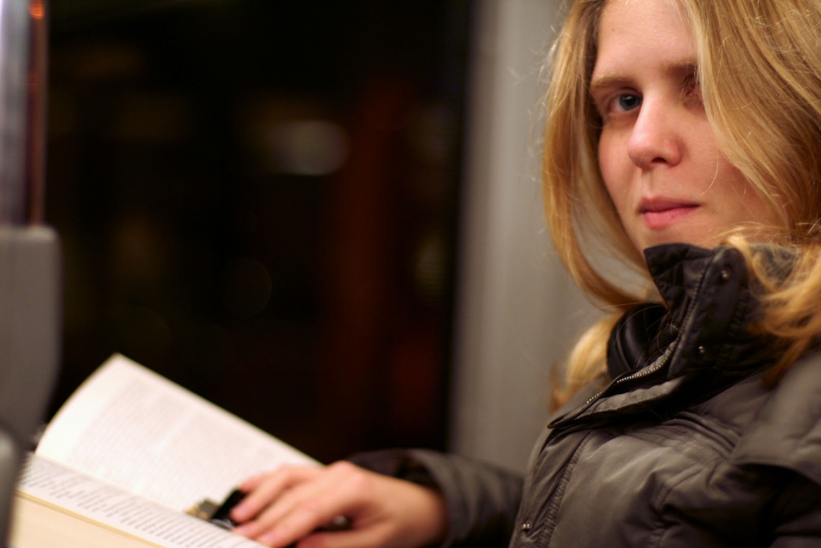Mais uma viagem no 507, mais uma fotografia. Ou melhor, duas. Desta vez conheci a Cláudia, uma jovem estudante universitária a quem a atual época de exames não deixa muito tempo para os outros livros. Disse-me que aproveita para ler sobretudo nas férias e também no tempo livre que lhe proporcionam as viagens nos transportes públicos. Naquele final de dia, a Cláudia trazia consigo o primeiro volume da saga “O Mago“, de Raymond E. Feist, um livro de literatura fantástica, género que aprecia muito. Embora saiba que os livros não se devem julgar pela capa, admitiu que foi a capa desta edição que primeiro lhe chamou a atenção. Depois, a leitura da sinopse convenceu-a a fazer a compra.