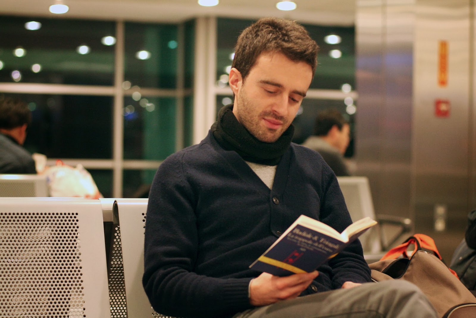 Quando cheguei ao aeroporto de Istambul tinha um par de horas de espera pela frente antes de embarcar no voo para Pequim. Como não poderia deixar de ser, o free shop revelou-se uma ótima distração, com direito à prova de guloseimas turcas e tudo. Depois dirigi-me para a sala de embarque e quando me sentei, olhei em redor e comentei com a minha amiga/companheira de viagem: “Agora o que vinha mesmo a calhar era aparecer alguém a ler”. E é nesse momento que chega o Nino, que se senta mesmo ao nosso lado, abre a mochila e saca de um livro!