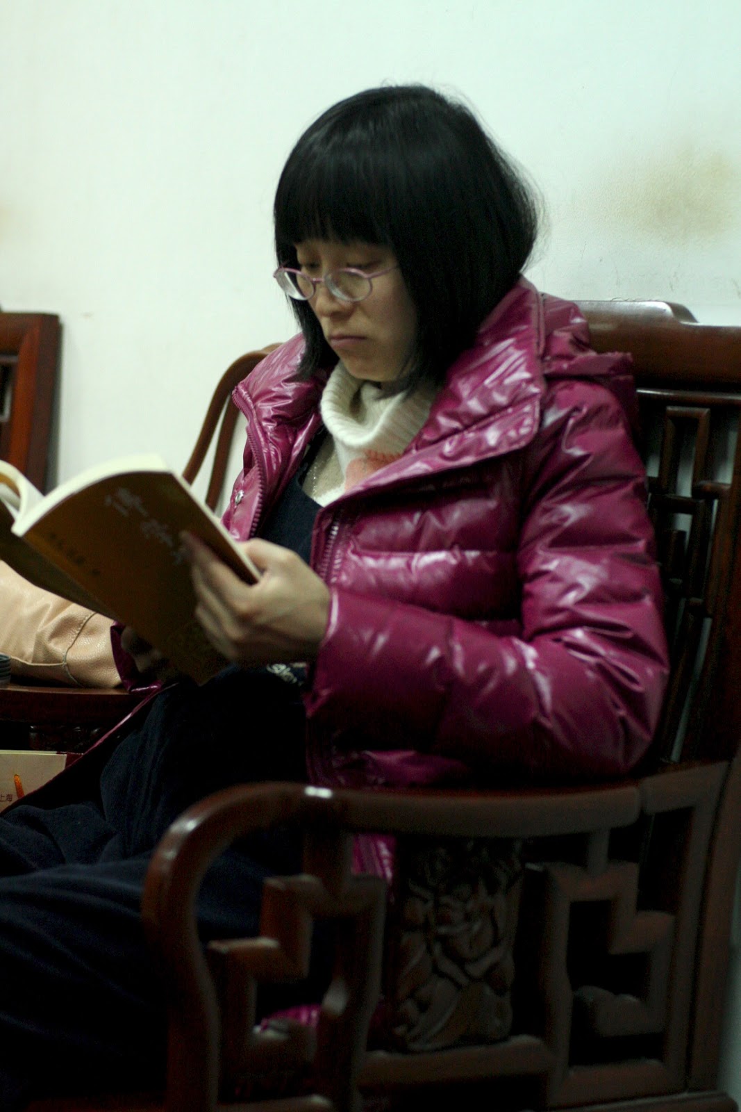 Muito perto da entrada do templo, numa ala logo à esquerda, passei pela porta de uma sala comprida onde, num contraste com a agitação que ia lá fora, reinava o silêncio quase absoluto. Aí, monges sentados atrás de guichés atendiam utentes do templo. Foi nesse “oásis” que vi a He Lei, visivelmente grávida e de rosto sereno, concentrada nas páginas de um livro sobre os primórdios do budismo.