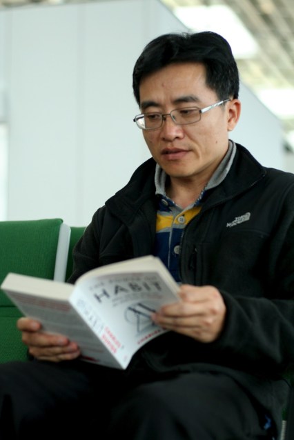 Na mesma sala de embarque do aeroporto de Hong Kong onde fotografei o Rou, abordei um outro leitor chamado Zhou. Zhou lia “The Power of Habit“, um livro que revela as mais recentes descobertas científicas sobre os hábitos: por que existem, como funcionam e como podemos mudá-los. No entender de Zhou, o tema é de grande interesse uma vez que, para o bem ou para o mal, os hábitos nos definem, daí ser importante saber identificá-los e, se necessário, mudá-los.