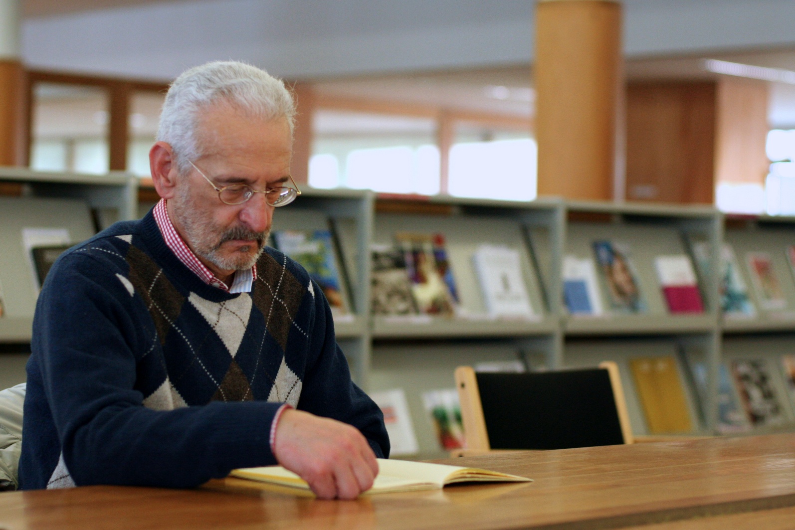 O Rui não é frequentador habitual da Biblioteca Municipal Almeida Garrett, mas deu-se a coincidência de lá estar num dos dias que eu tinha estipulado para fotografar no interior do edifício. Leitor de tudo um pouco, gosta de poesia em particular. Quando o fotografei, lia uma coletânea de poemas sobre a cidade do Porto organizada por Eugénio de Andrade. À pergunta sobre o porquê daquela escolha, o Rui respondeu: “Pela dicotomia Porto/Lisboa. Porque quem faz versos sobre Lisboa, escreve fados; e quem faz versos sobre o Porto escreve poesia”.