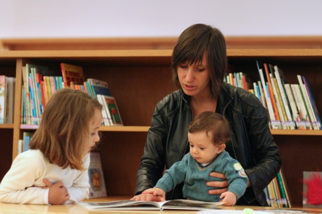 A Mariana leva os seus filhos Eva e Simão à Biblioteca Municipal Almeida Garrett quase todas as semanas e todos as noite lê-lhes uma história. Preocupa-se também em dar o exemplo, por isso ela própria lê bastante e diz que em casa há muitos livros. Pelo menos no que diz respeito à Eva (que eu já tinha fotografado exatamente no mesmo local), a Mariana pode afirmar que a estratégia está a resultar porque “já tem o bichinho dos livros”. Quando os fotografei havia três livros sobre a mesa, todos para serem lidos naquela manhã: “Odeio a Escola“, “Feliz Dia de Nascimento” e “O Magnífico Plano do Lobo“.