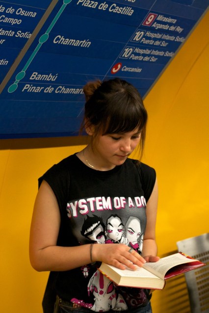 Estar em Madrid num domingo de manhã exige uma ida ao Rastro. No bairro onde antigamente existia um matadouro e onde os animais, depois de abatidos, eram arrastados para os curtidores deixando um rasto (rastro, em espanhol) de sangue, acontece semanalmente aquilo que eu considero muito mais que uma simples feira da ladra: é uma verdadeira festa! Embaladas pelos pregões dos vendedores, pela música dos artistas de rua e pelo cheiro a tapas, milhares de pessoas passeiam-se pelas ruas onde se vende de tudo, livros incluídos. De partida para o próximo lugar a visitar, fui apanhar o metro na estação Tirso de Molina e foi aí, na plataforma, que passei pela Narcis a ler o que tinha acabado de comprar no Rastro: “Máquinas Mortales“, um livro de ficção científica escrito por Philip Reeve.