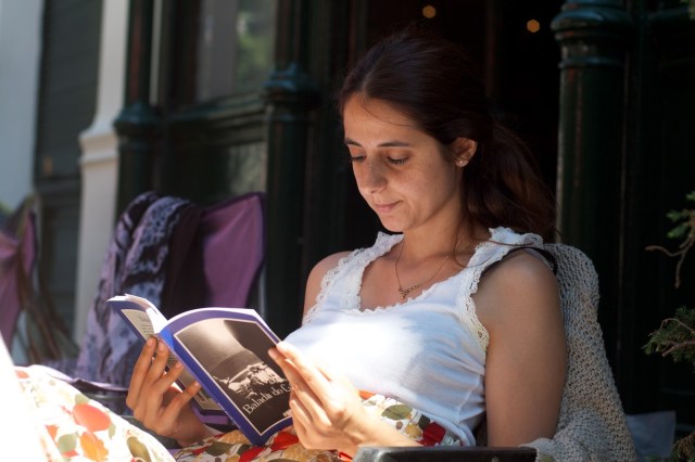 A minha caminhada levou-me, também, à Rua das Galerias de Paris onde acontecia o habitual mercado urbano, um tipo de evento muito em voga por estas bandas. Foi aí, junto à bancada onde tinha expostas peças de bijutaria feitas por si, que encontrei a Ariana a ler “Balada do Café Triste“, um romance de Carson Mccullers que lhe foi recomendado e que, embora não tivesse passado das primeiras páginas, já lhe parecia muito interessante. Por se dizer leitora habitual e afirmar que lê de tudo um pouco pedi-lhe que arriscasse apontar o livro da sua vida. Respondeu-me que há uns anos não hesitaria em escolher “A Campânula de Vidro“, de Sylvia Plath, mas que se o relesse hoje talvez já não o fosse…