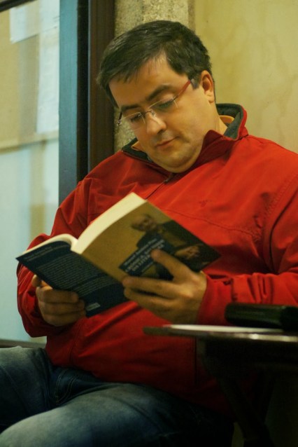 Na última greve dos STCP, à falta de autocarros, não tive outra solução a não ser caminhar da Rua da Restauração até à Casa da Música para apanhar o Metro. Se assim não fosse, não teria passado pela entrada da Escola de Música Guilhermina Suggia onde, para lá das portas de vidro e ao abrigo da noite gelada, o Joaquim lia enquanto esperava que terminasse a lição do filho. Manuel António Pina, jornalista e escritor portuense, foi a sua escolha para esse momento de pausa. No livro “Crónica, Saudade da Literatura“, o Joaquim estava basicamente a reler textos que já conhecia, porque para si ler Manuel António Pina é pura diversão. “Gosto muito deste autor, acho piada à forma como escrevia e às críticas que fazia. Mas também sou leitor da sua poesia e compro os seus livros infantis para o meu filho”, contou-me.