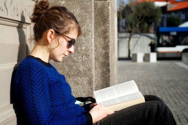 Foi o Programa Erasmus que trouxe a Irena até ao Porto. Chegou enquanto estudante de Design Industrial, ficou para fazer o Mestrado e foi graças à sua tese que arranjou um trabalho em Guimarães, no âmbito da Capital Europeia da Cultura. Depois disso, decidiu continuar por cá a trabalhar como designer. E assim se passaram quatro anos. A Irena, que é austro-alemã, gosta de viver na Invicta, cidade que aprecia ainda mais quando faz sol. “Quando chove tanto como nos últimos dias não gosto. Para isso prefiro a minha terra onde em vez de chover, neva. Ao menos posso fazer ski ou snowboard“, disse rindo. Mas no último domingo, todos tivemos direito a uma pausa no mau tempo e fomos brindados com um dia luminoso, quase sem nuvens. À semelhança do que eu fiz por uns minutos junto ao Douro, a Irena aproveitou-o para se espraiar um pouco ao sol nas traseiras da Reitoria da Universidade do Porto, um spot perfeito. Consigo tinha o livro “Der Undertjährige der aus dem Fenster stieg und verschwand“, isto é, “O Centenário Que Fugiu Pela Janela e Desapareceu“, caso sério de sucesso editorial. “Foi-me emprestado por uma amiga austríaca quando fui visitá-la“, explicou. “Agora tenho três semanas para acabá-lo porque tenho de entregá-lo a um outro amigo austríaco que vai levá-lo de volta“. Não é tão linda esta livre circulação de livros?