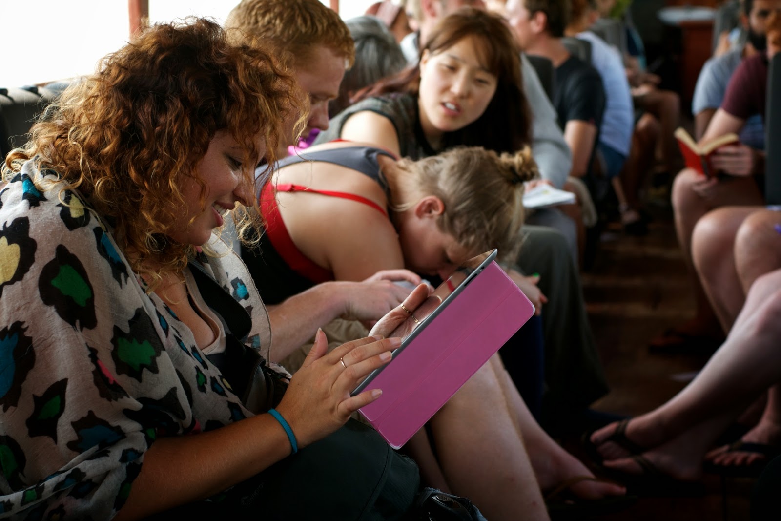 No dia em que acordei em Chiang Khong, na margem tailandesa do Mekong, ainda demorei a decidir se deveria ou não atravessar a fronteira para o Laos e iniciar nessa mesma manhã a descida do mítico rio asiático até Luang Prabang. Chovera torrencialmente durante toda a noite, como se a natureza tivesse decidido mostrar-me como é a monção no seu máximo esplendor, e faltam-me os adjetivos para qualificar a enormidade dos relâmpagos e dos trovões que foram interrompendo o meu sono. A descida, nos moldes em que eu quis fazê-la, implica viajar durante dois dias num “slow boat”, uma embarcação a motor com 35 metros de comprimento que, tal como o nome indica, se desloca muito lentamente — mas muito lentamente mesmo! — e cujos antigos assentos de madeira foram recentemente substituídos por bancos de carros e carrinhas que devem ter tido a sucata como destino. Note-se que estes bancos não são reclináveis nem estão pregados ao chão, o que permite que cada freguês faça uma gestão muito particular do espaço que lhe cabe para as pernas… Outra característica destes “barcos lentos” é não terem janelas, por isso, quando chove, a única forma de proteger os passageiros das enxurradas é baixar uns oleados que tapam a vista quase por completo, arruinando aquele que era para mim o único objetivo deste passeio demorado: apreciar a paisagem. Vá-se lá saber porquê, decidi arriscar tudo e seguir viagem, cumprindo o calendário que tinha estipulado para este troço da pequena volta ao mundo. Naquele pedaço de terra que parece não pertencer a ninguém, ali entre a Tailândia e o Laos, estava eu na fila para tratar do visto laosiano e a conversar com a minha companheira de viagem, quando a pessoa à nossa frente se volta para trás e exclama: “Portuguesas!”. Foi assim que conheci a Emma, felicíssima por encontrar as primeiras compatriotas em vários meses. Dona de um sorriso que lhe ocupa o rosto todo (sim, sou muito sensível a sorrisos), a Emma é um ser que transborda luz. E palavras. Mas não palavras ocas ou vãs. Palavras cativantes, cheias de histórias, de gentes, de paisagens, de sensações colhidas por esse mundo fora. Palavras carregadas de gratidão, também, por a vida lhe permitir viver o seu maior sonho: viajar durante três anos. Palavras que, por isso, se fazem acompanhar muitas vezes de lágrimas, daquelas que choramos de alegria e que eu acabei por chorar com ela. Determinada a viajar durante uma longa temporada, a Emma trabalhou arduamente em Londres durante vários anos e juntou de forma obstinada todos os tostões. Manteve o foco até ao dia em que largou o lugar de direção que ocupava numa empresa do mundo do petróleo. Quando nos conhecemos à entrada do Laos, já tinha passado sete meses entre a Índia, China, Singapura, Malásia e Tailândia. Tinha, portanto, cerca de dois anos e meio de viagem pela frente e mais do que nunca os meus seis meses de licença sem vencimento pareceram-me muito pouco… O primeiro dia de descida do Mekong já levava várias horas quando do meu lugar, na popa, olho para a proa e vejo a Emma com um tablet nas mãos. Por sorte, estava a começar a ler “Americanah“, de Chimamanda Ngozi Adichie, e essa foi a deixa perfeita para lhe falar do Acordo Fotográfico, propôr-lhe a foto e obter licença para contar aqui a sua história. “Fiz o download deste livro depois de saber que a autora, tal como eu, defende ativamente os direitos dos homossexuais“, disse, “mas ainda estou sob o efeito do livro que li antes deste”. “Invencível” era o livro em questão, a espetacular biografia de Louie Zamperini, um atleta olímpico norte-americano que parte em combate durante a Segunda Guerra Mundial e cujo avião se despenha um dia no Oceano Pacífico. Depois de sobreviver a sete semanas à deriva, é resgatado por japoneses ao largo de uma ilha e quando pensava que o pior já tinha passado, na verdade estava apenas no início do seu calvário. “É um livro maravilhoso! Marcou-me tanto que não consigo parar de falar dele e de recomendá-lo a toda a gente!“. Há mais de dois meses que não vejo a Emma. Por vezes trocamos mensagens via Facebook, mas consigo recordar o timbre da sua voz. Depois de três semanas no Laos, passou um mês no Cambodja, regressou à Tailândia e encontra-se por estes dias em Myanmar. Se quiserem acompanhar o seu périplo nos próximos dois anos e alguns meses podem fazê-lo através do seu blogue: Footprints in the clouds.