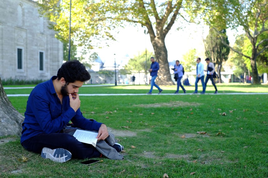 Abdussamed é um jovem estudante de Relações Internacionais que diz ler uma média de trinta a quarenta livros por ano. Para além da cultura e da educação, acredita convictamente que nos livros encontra todas as explicações acerca da vida. Para responder à minha pergunta seguinte não hesitou um só instante. Reagiu com prontidão: “Sou muçulmano e o livro da minha vida é o Corão. Com ele aprendi a maior das lições: o propósito da Humanidade é viver para Deus, de acordo com as leis de Deus.”