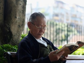 Um pequeno leitor, em Hong Kong
