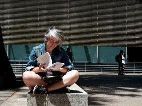 Livros, pessoas e fotografias numa homenagem ao ato de ler.