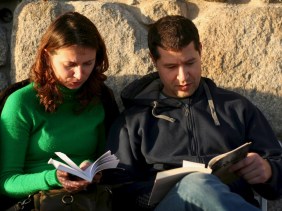 Livros, pessoas e fotografias numa homenagem ao ato de ler.